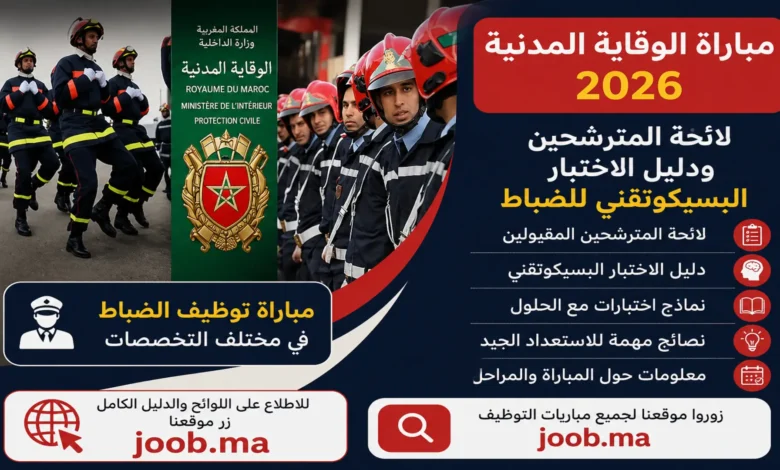 تعرف على لائحة المترشحين ومواعيد الاختبار البسيكوتقني لمباراة ضباط الوقاية المدنية 2026 (4-8 ماي). دليل شامل حول الوثائق، الموقع، ونصائح…