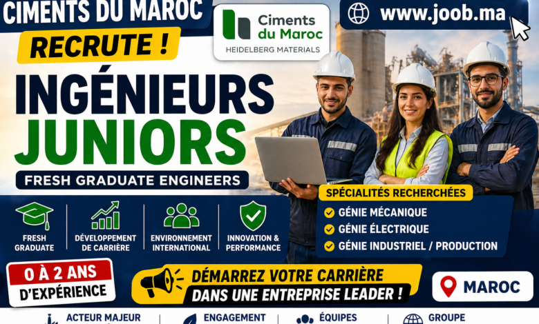 أكمل القراءة »مقدمة أعلنت شركة Ciments du Maroc عن فتح باب التوظيف لفائدة المهندسين الجدد (Fresh Graduates) في عدة تخصصات، وذلك في…